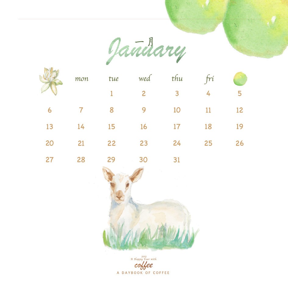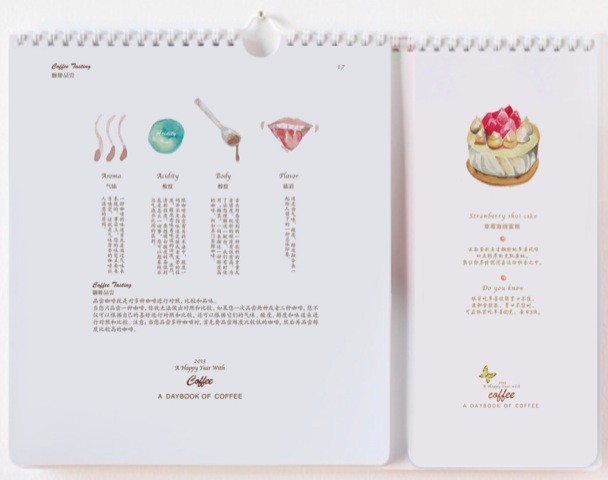 临近2013年的时候,蒋冰怡要制作一本日历。因为身边的朋友都喜欢喝咖啡,就将咖啡作为了日历主题。