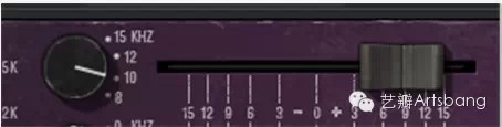 当管弦乐进入后需要考虑的问题是管弦乐声音与电子声音的结合,这里我使用Trident A-Range将12秒后出现的Cello和Basses音色,在10k处进行了9dB的提升,这个处理在普通EQ上提升是危险的,但选用这个软件,效果还是令人非常满意,声音增加了电子感,但又没有破坏原来的音色特征。