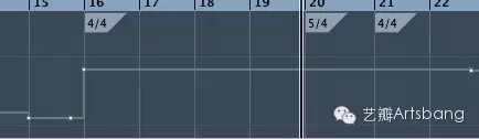 节奏方面,我在4/4拍的基础上,在31秒处进行了2拍的扩展,而在51秒处我加入了一个5/4拍,一个是为了冲击高潮对节奏进行破坏,另外是配合画面段落的转折以及画面剪辑的节奏。此处画面的剪辑在音乐的节奏上给了我一个非常好的机会,接着从5/4拍顺利转换为4/4三连音,进一步对节奏进行变化并再现开篇的8度声音主题。这里的5/4拍和31秒处进行的节奏扩展处理方法是不一样的,一个是4+4+2,一个是2+3。这类变化的好处一是可以更好的配合画面的剪辑段落及节奏,二是让音乐更多变一些,三是在这类战争宣传片中可以增加变化以及紧张感,稳定的拍子会让人乏味。